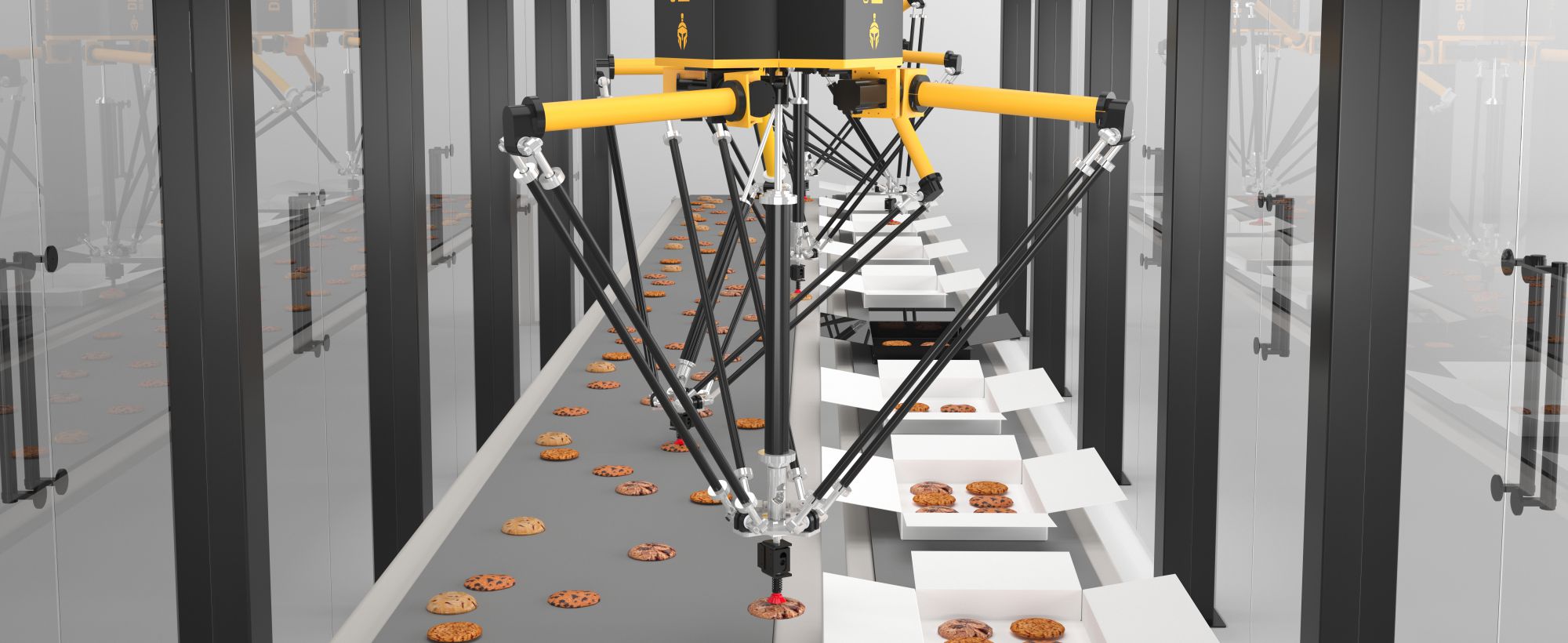 Delta-4 is a high speed robot for picking and sorting of items from the conveyor belts.